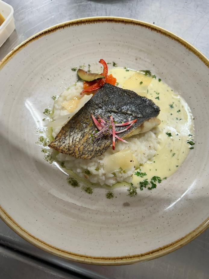 La pavé de Maigre à la plancha beurre blanc à l'estragon et risotto crémeux