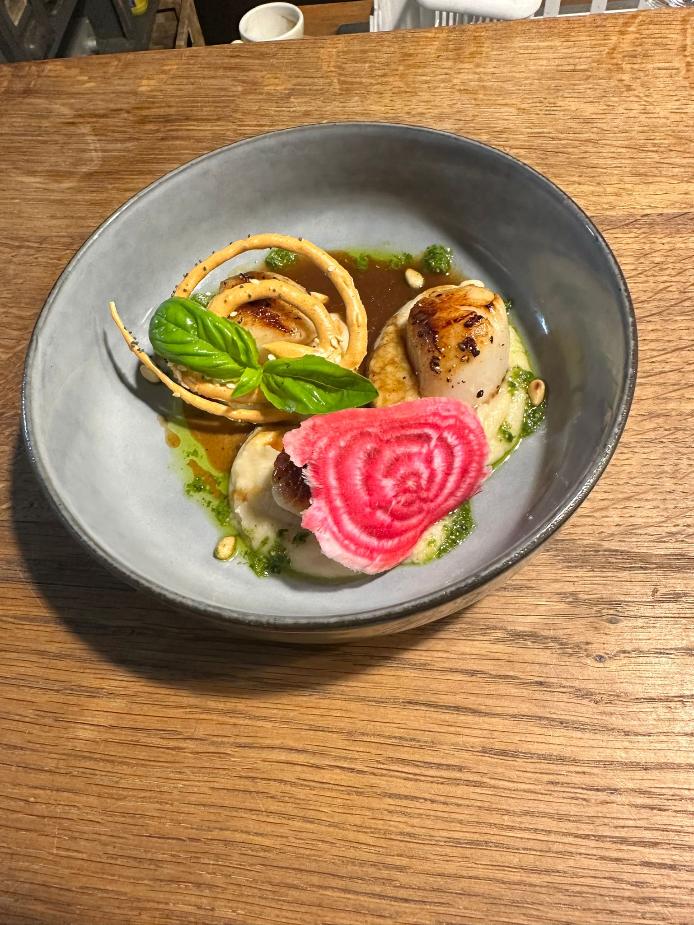 Les Saint Jacques snackées, jus de viande et mousseline de céleri