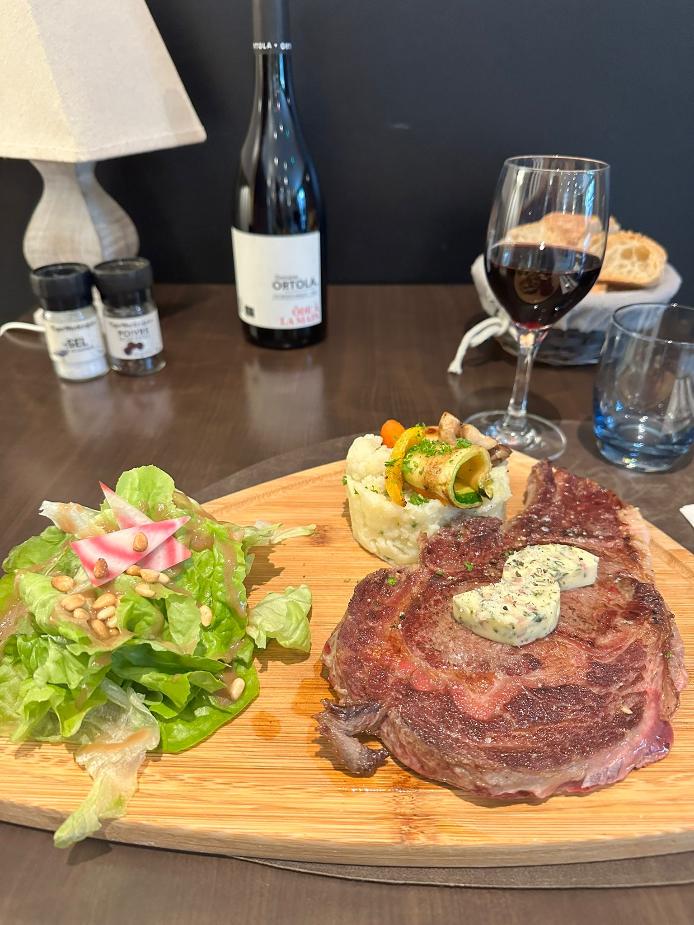 L'entrecôte 350 g, beurre maître d'hôtel et purée maison
