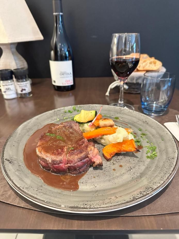 Le Filet de Boeuf, jus truffé, légumes de saison rôtis et purée maison
